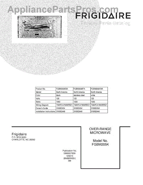 Parts for Frigidaire FGBM205KWA: 01 - Cover Parts