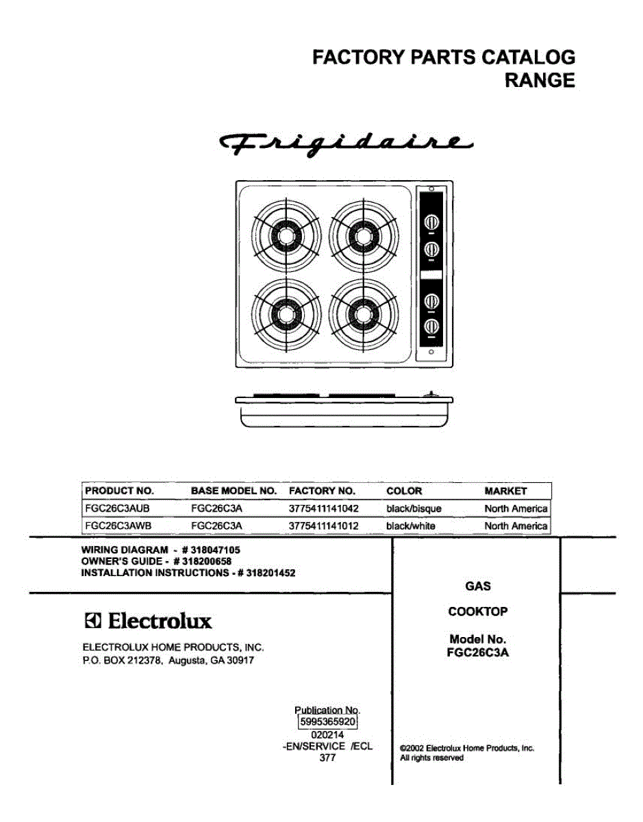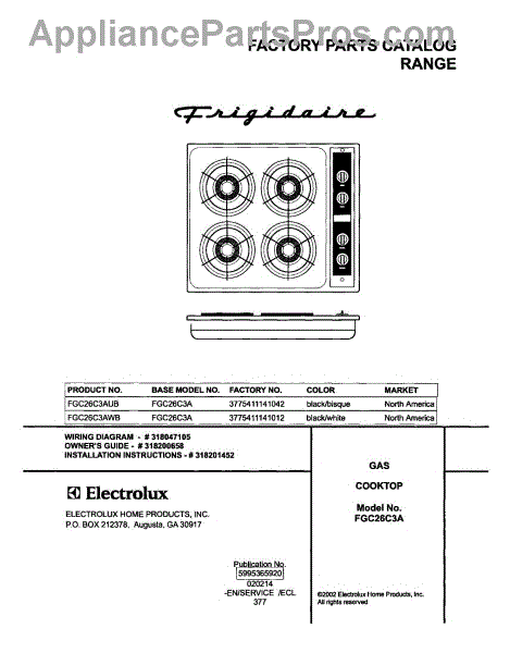 Parts for Frigidaire FGC26C3AWB: 01 - Cover Parts