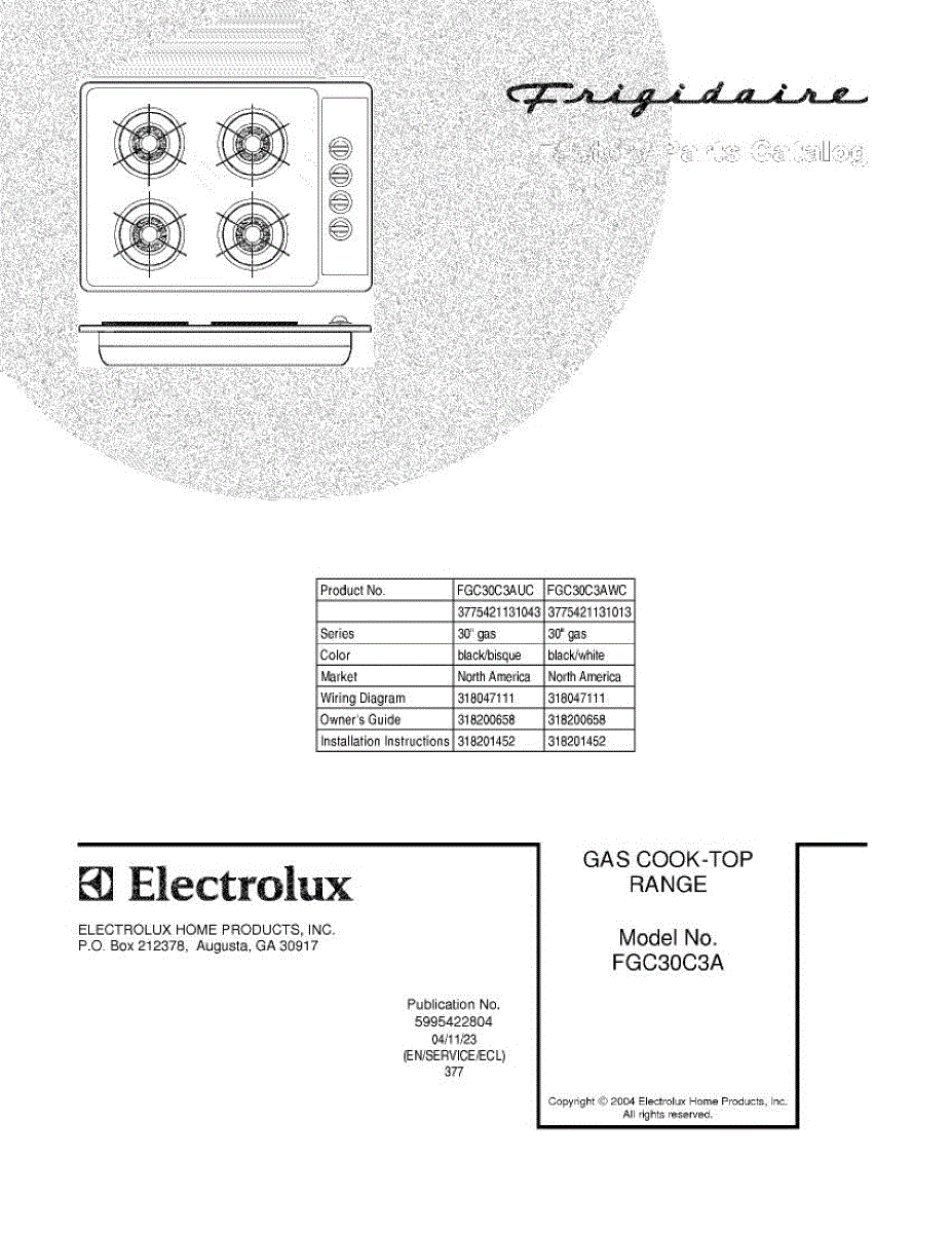 Parts for Frigidaire FGC30C3AUC: 01 - Cover Parts