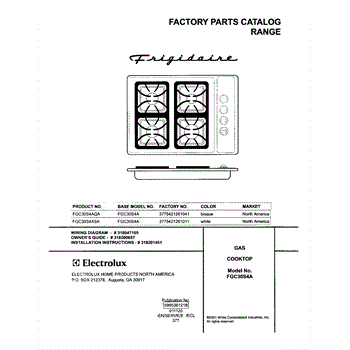 Parts for Frigidaire FGC30S4AQA: 01 - Cover Parts
