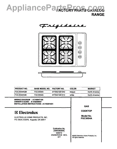 Parts for Frigidaire FGC30S4ASB: 01 - Cover Parts