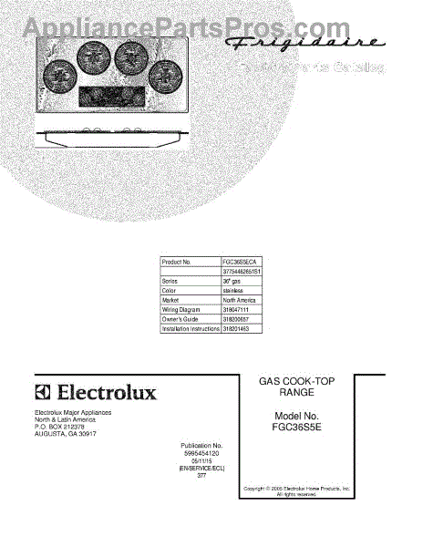 Parts for Frigidaire FGC36S5ECA: 01 - Cover Parts