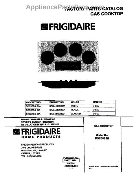 Parts for Frigidaire FGC36S5HBA: 01 - Cover Parts