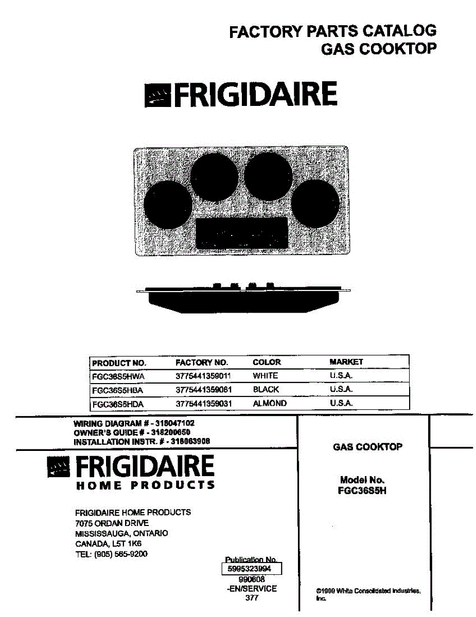 Parts for Frigidaire FGC36S5HDA: 01 - Cover Parts