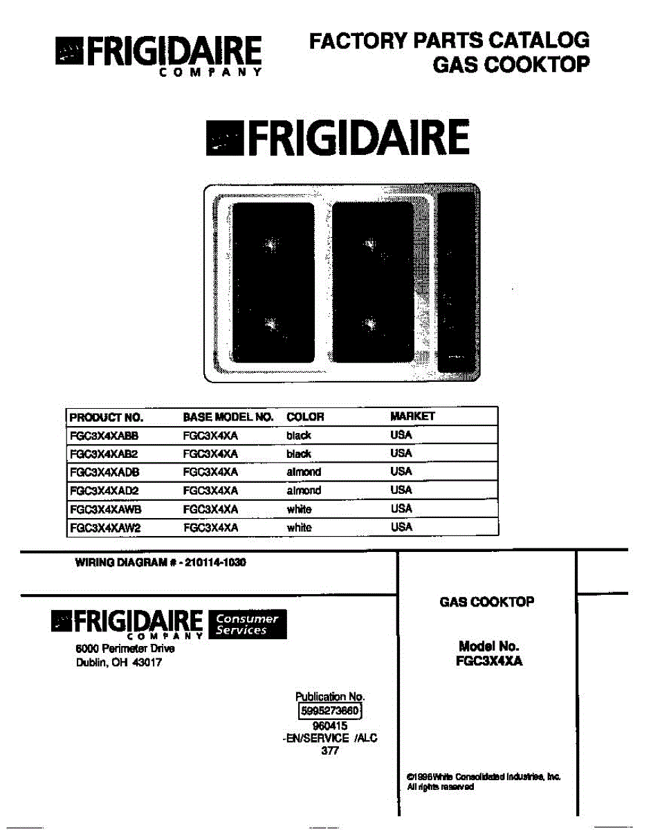 Parts for Frigidaire FGC3X4XADB: 01 - Cover Parts