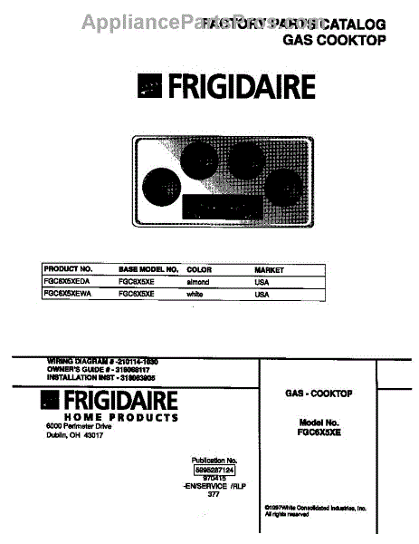 Frigidaire Cooktop Parts