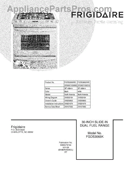 Parts for Frigidaire FGDS3065KBC: 01 - Cover Parts