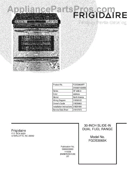 Parts for Frigidaire FGDS3065KFF: 01 - Cover Parts