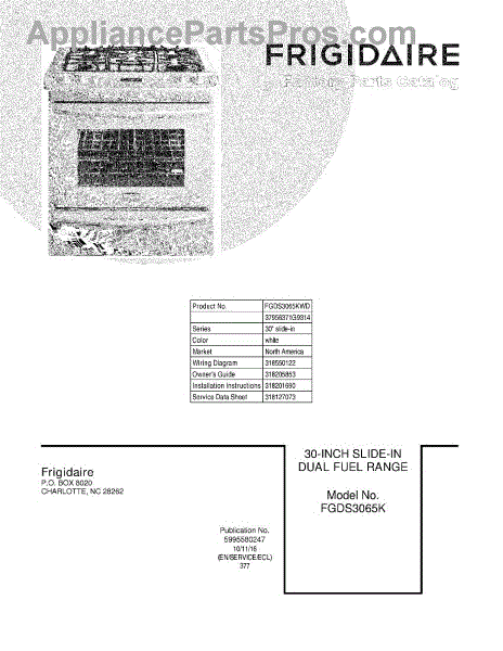Parts for Frigidaire FGDS3065KWD: 01 - Cover Parts