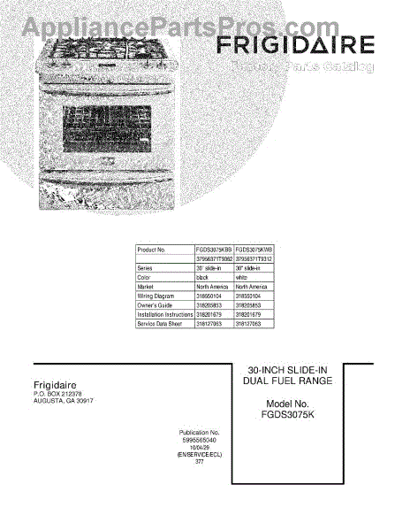 Parts for Frigidaire FGDS3075KBB: 01 - Cover Parts