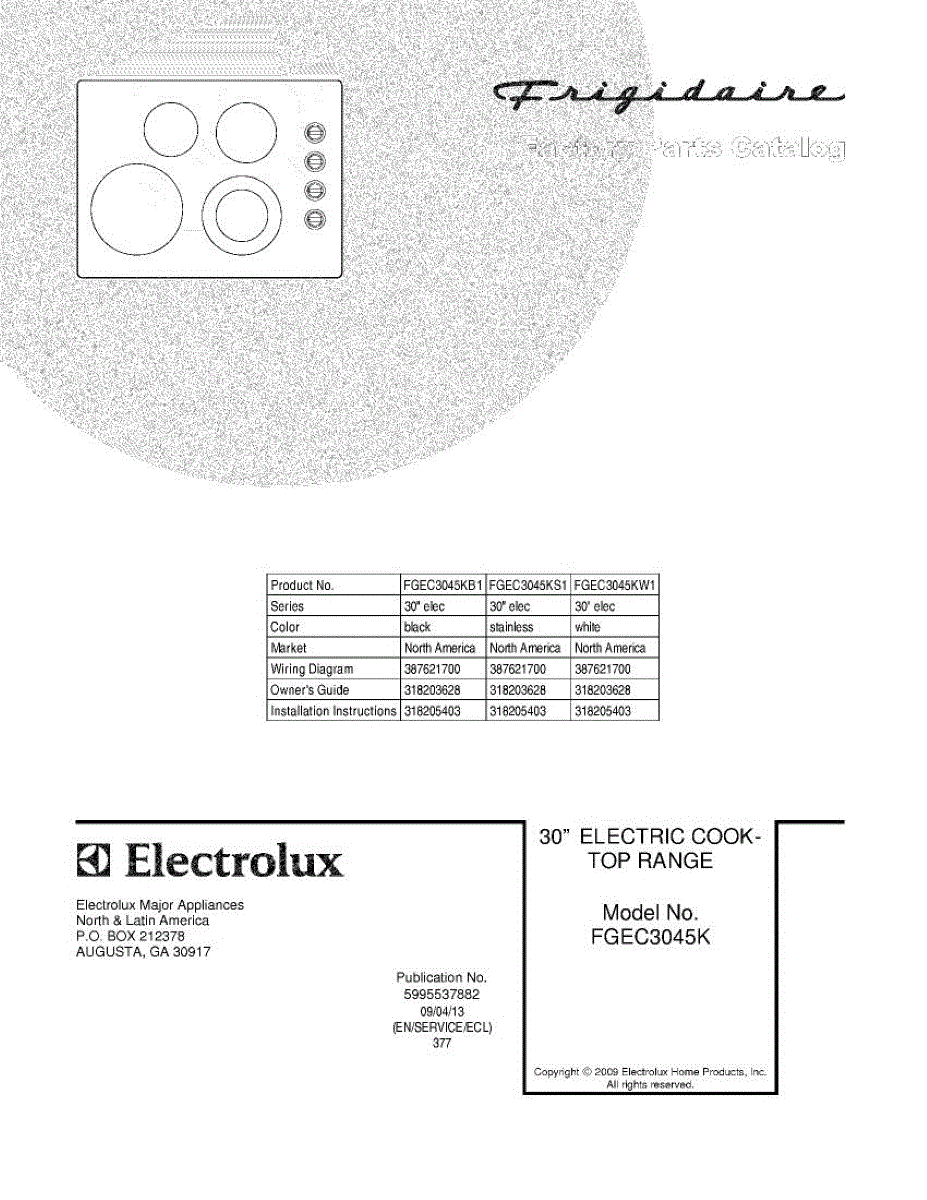 Parts for Frigidaire FGEC3045KB1: 01 - Cover Parts