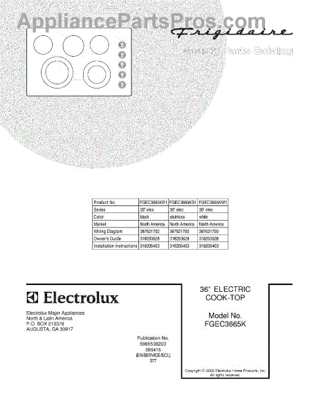 Parts for Frigidaire FGEC3665KS1: 01 - Cover Parts