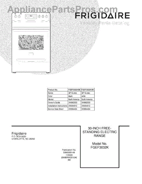Frigidaire Range Parts