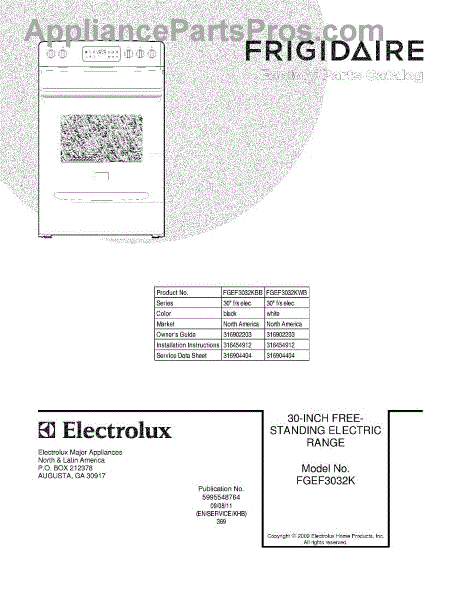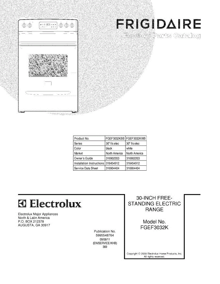 Parts for Frigidaire FGEF3032KWB: 01 - Cover Parts