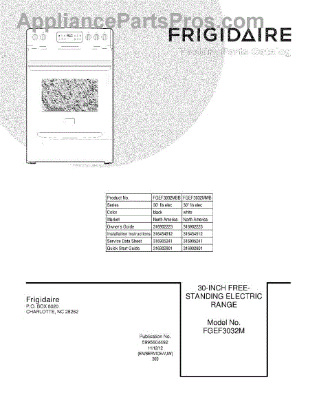 Parts for Frigidaire FGEF3032MBB: 01 - Cover Parts
