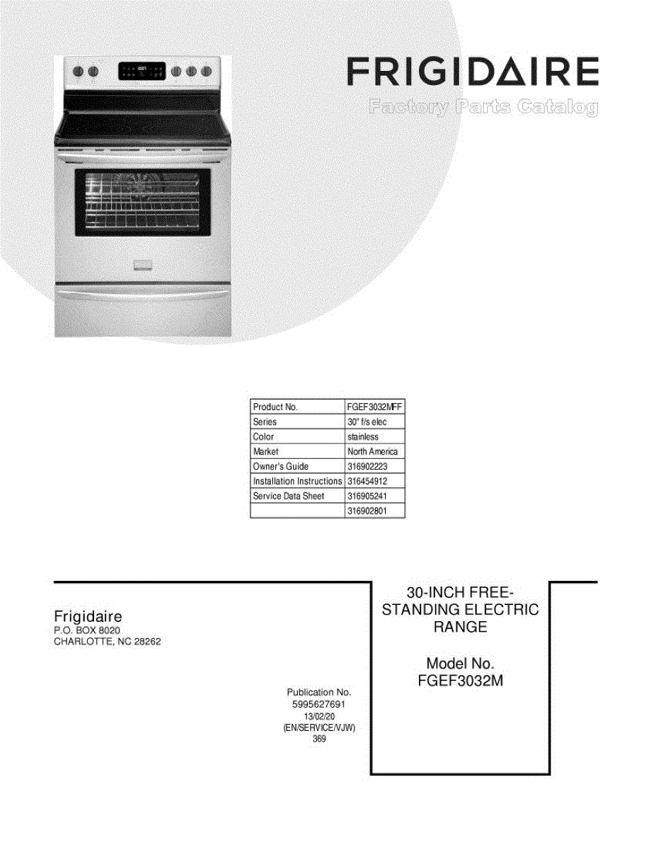 Parts for Frigidaire FGEF3032MFF: 01 - Cover Parts