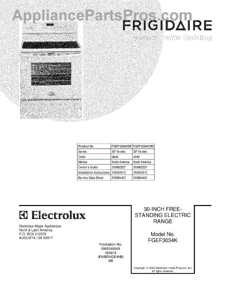 Parts for Frigidaire FGEF3034KBB: 01 - Cover Parts
