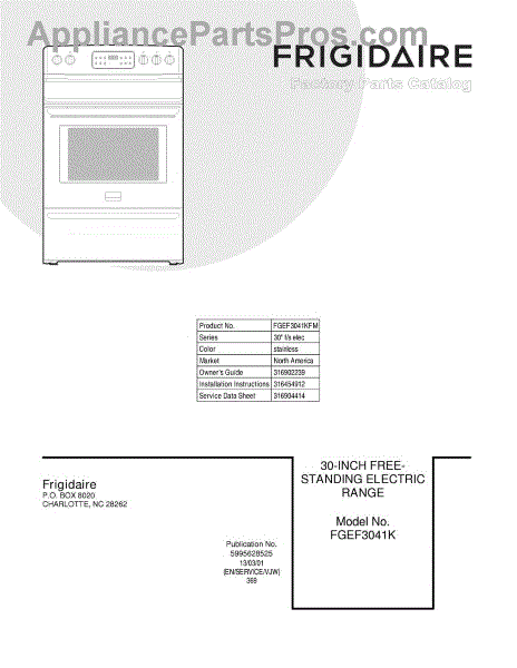 Parts for Frigidaire FGEF3041KFM: 01 - Cover Parts