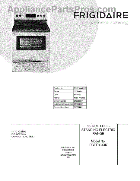Parts for Frigidaire FGEF3044KFG: 01 - Cover Parts