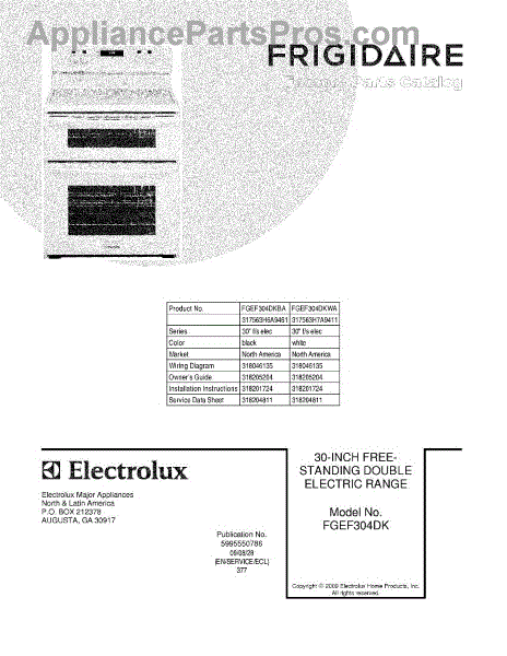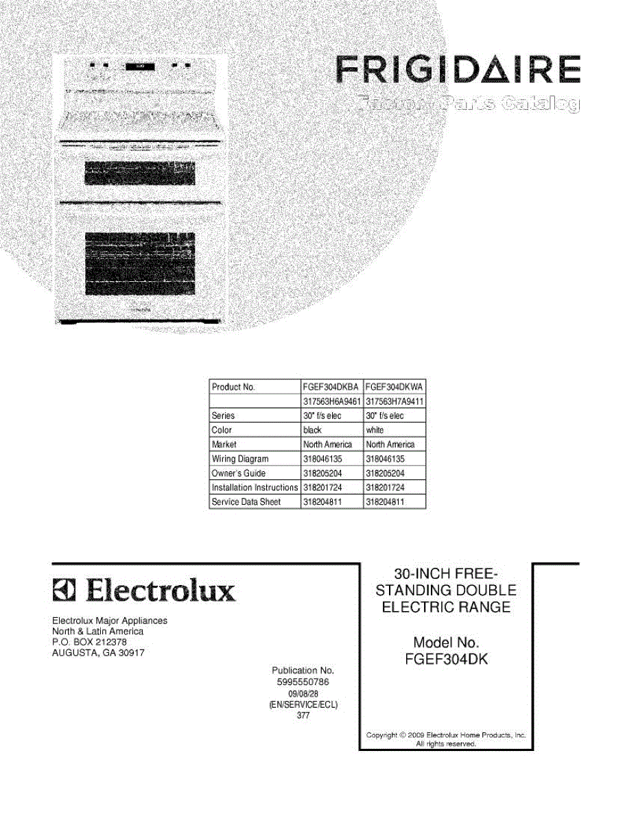Parts for Frigidaire FGEF304DKWA: 01 - Cover Parts
