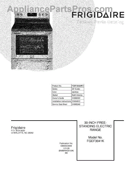 Parts for Frigidaire FGEF3055MFD: 01 - Cover Parts