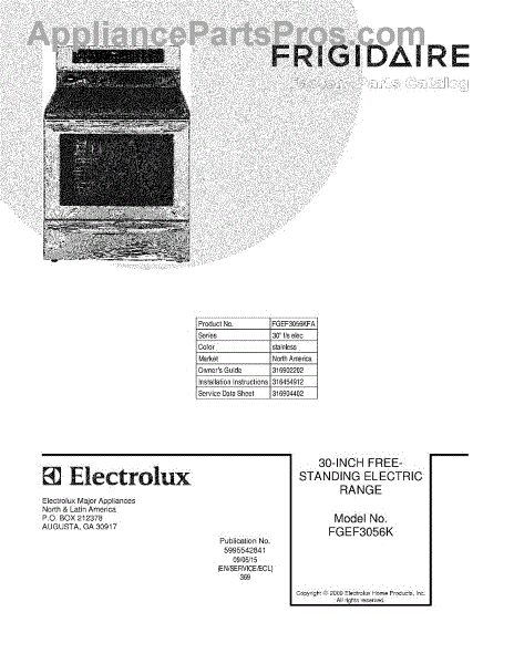 Parts for Frigidaire FGEF3056KFA: 01 - Cover Parts