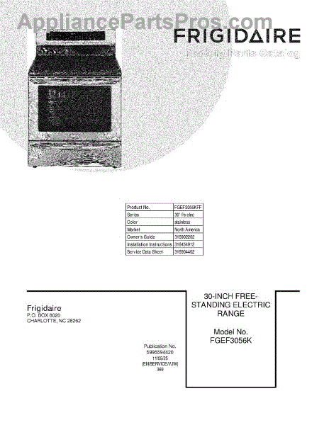 Parts for Frigidaire FGEF3056KFF: 01 - Cover Parts