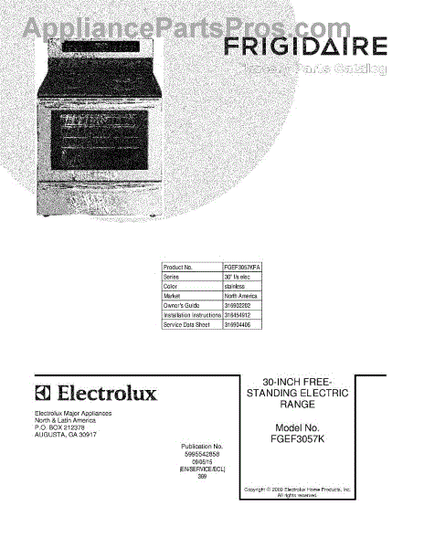 Parts for Frigidaire FGEF3057KFA: 01 - Cover Parts