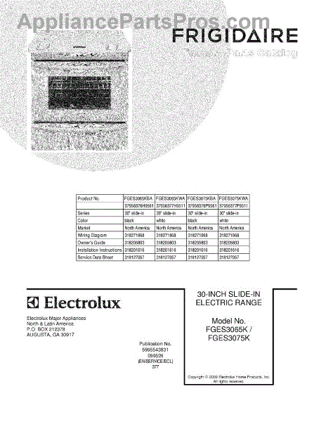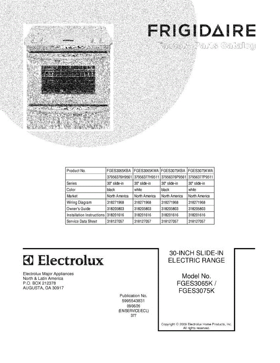 Parts for Frigidaire FGES3065KBA: 01 - Cover Parts