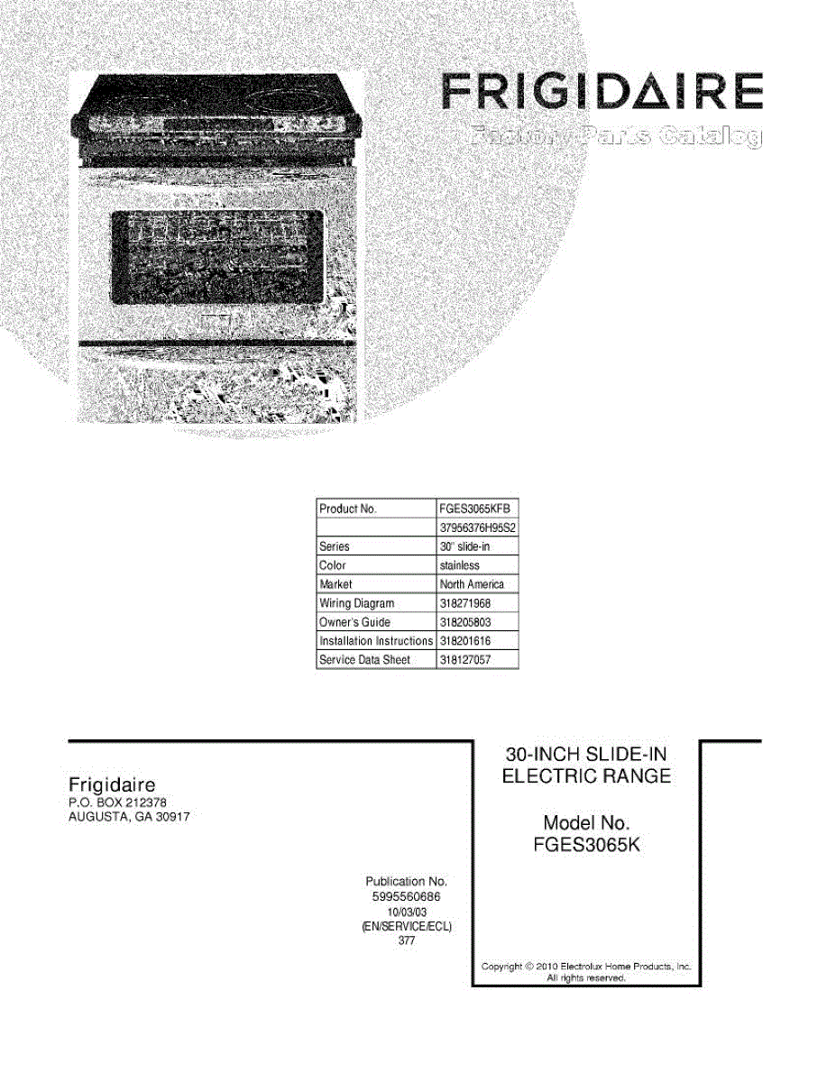 Parts for Frigidaire FGES3065KFB: 01 - Cover Parts