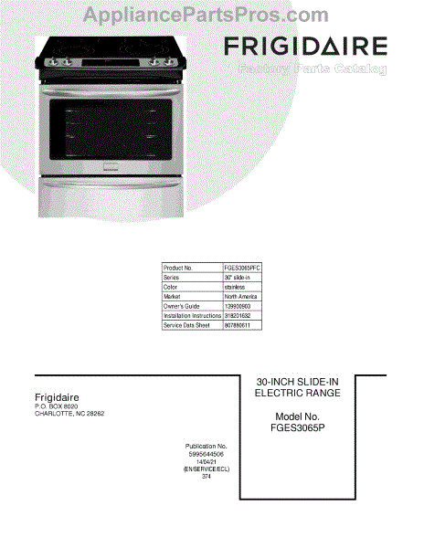 Parts for Frigidaire FGES3065PFC: 01 - Cover Parts