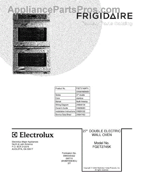 Parts for Frigidaire FGET2745KFA: 01 - Cover Parts