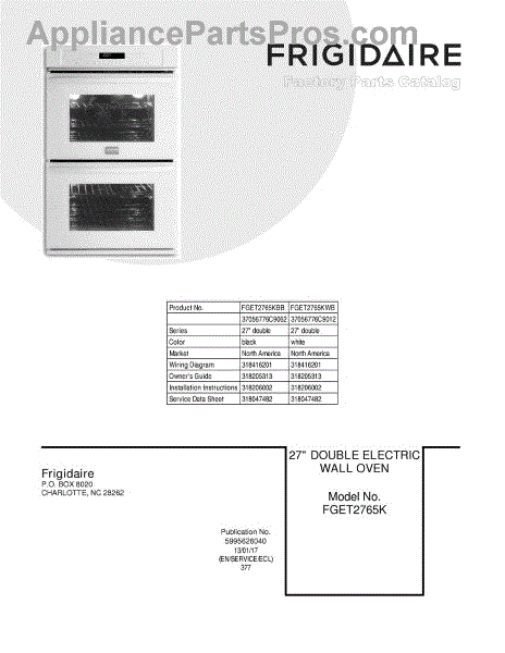 Parts for Frigidaire FGET2765KBB: 01 - Cover Parts