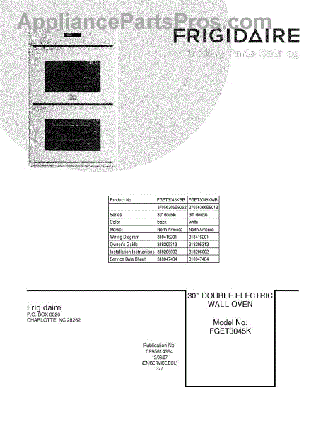 Parts for Frigidaire FGET3045KWB: 01 - Cover Parts