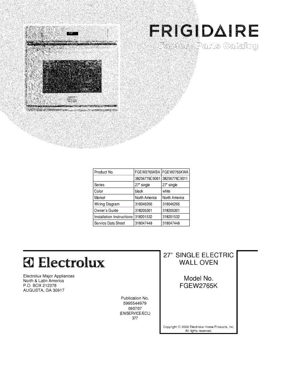 Parts for Frigidaire FGEW2765KBA: 01 - Cover Parts