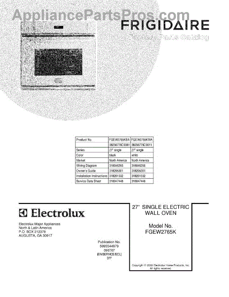 Parts for Frigidaire FGEW2765KWA: 01 - Cover Parts