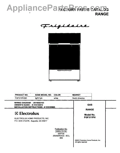 Parts for Frigidaire FGF311PHSD: 01 - Cover Parts