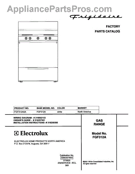Parts for Frigidaire FGF312ASA: 01 - Cover Parts