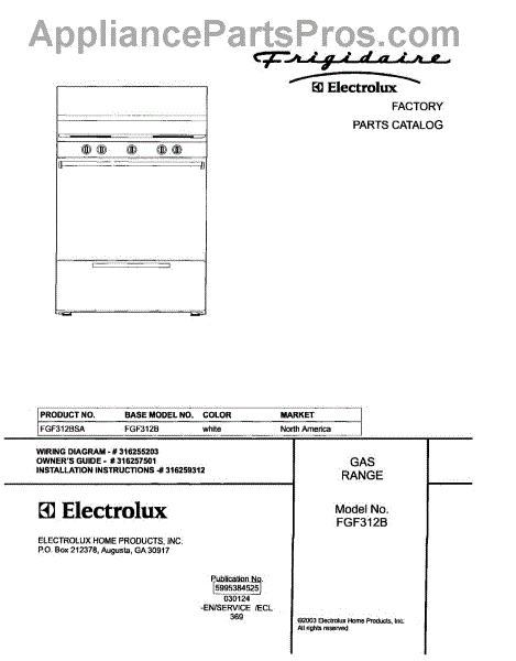 Parts for Frigidaire FGF312BSA: 01 - Cover Parts