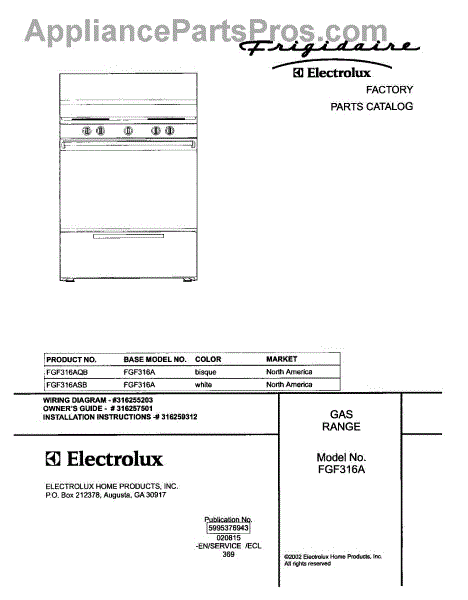 Parts for Frigidaire FGF316ASB: 01 - Cover Parts
