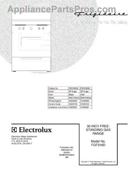 Parts for Frigidaire FGF316DSC: 01 - Cover Parts