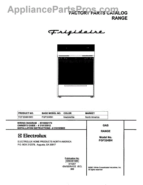 Parts for Frigidaire FGF324BHWD: 01 - Cover Parts