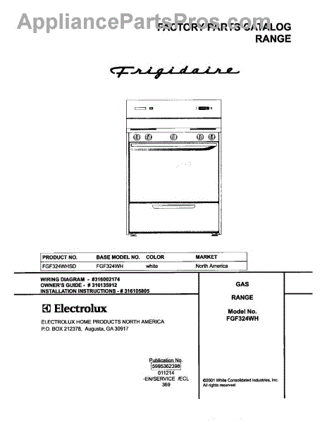 Parts for Frigidaire FGF324WHSD: 01 - Cover Parts