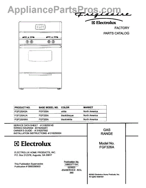 Parts for Frigidaire FGF326ASA: 01 - Cover Parts