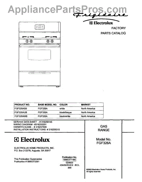 Parts for Frigidaire FGF326ASB: 01 - Cover Parts