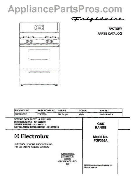 Parts for Frigidaire FGF326ASE: 01 - Cover Parts