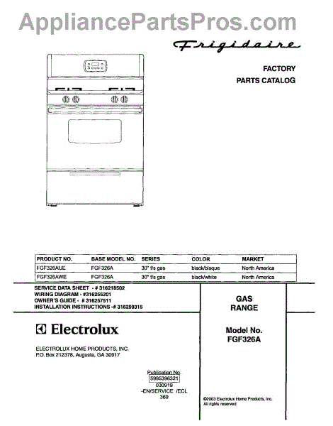 Parts for Frigidaire FGF326AUE: 01 - Cover Parts