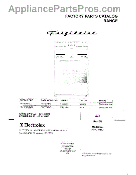 Parts for Frigidaire FGF334BGWJ: 01 - Cover Parts