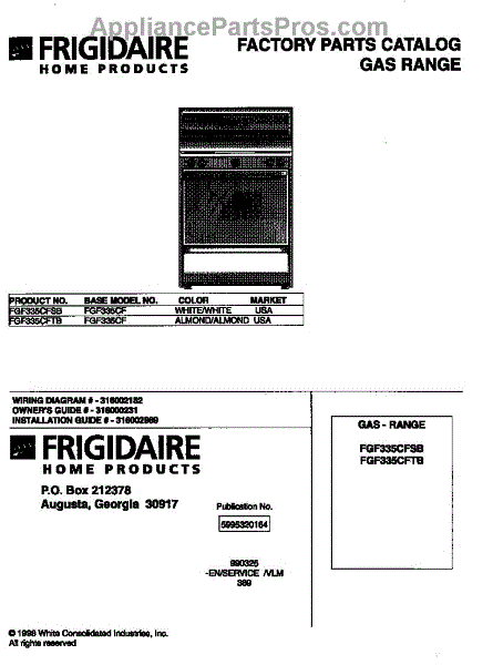 Parts for Frigidaire FGF335CFTB: 01 - Cover Parts