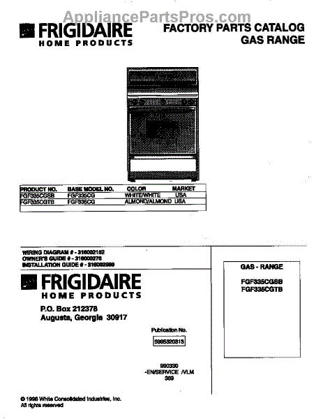 Parts for Frigidaire FGF335CGSB: 01 - Cover Parts